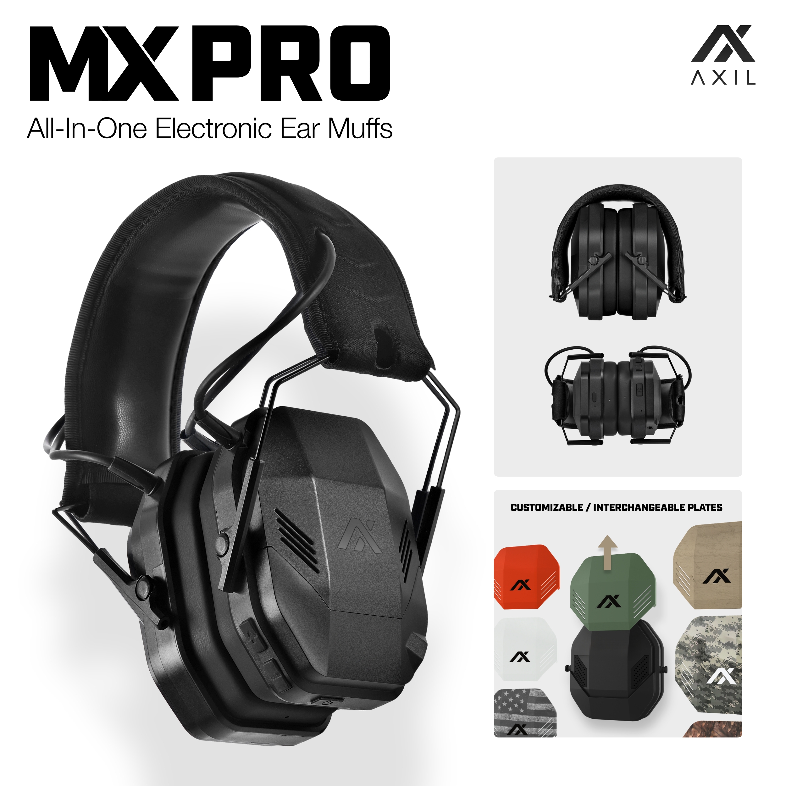 Each model comes with interchangeable plates on the outer cups, enabling users to easily switch between colors and designs for functional or aesthetic purposes. Whether a user chooses safety orange, tactical camouflage, the American flag pattern, black camo, or even apocalypse zombie designs, just to name some design choices, the MX Earmuff line offers endless customization. This feature also allows retailers to stock fewer products while providing a wide variety of color options, streamlining inventory management and enhancing the customer experience.