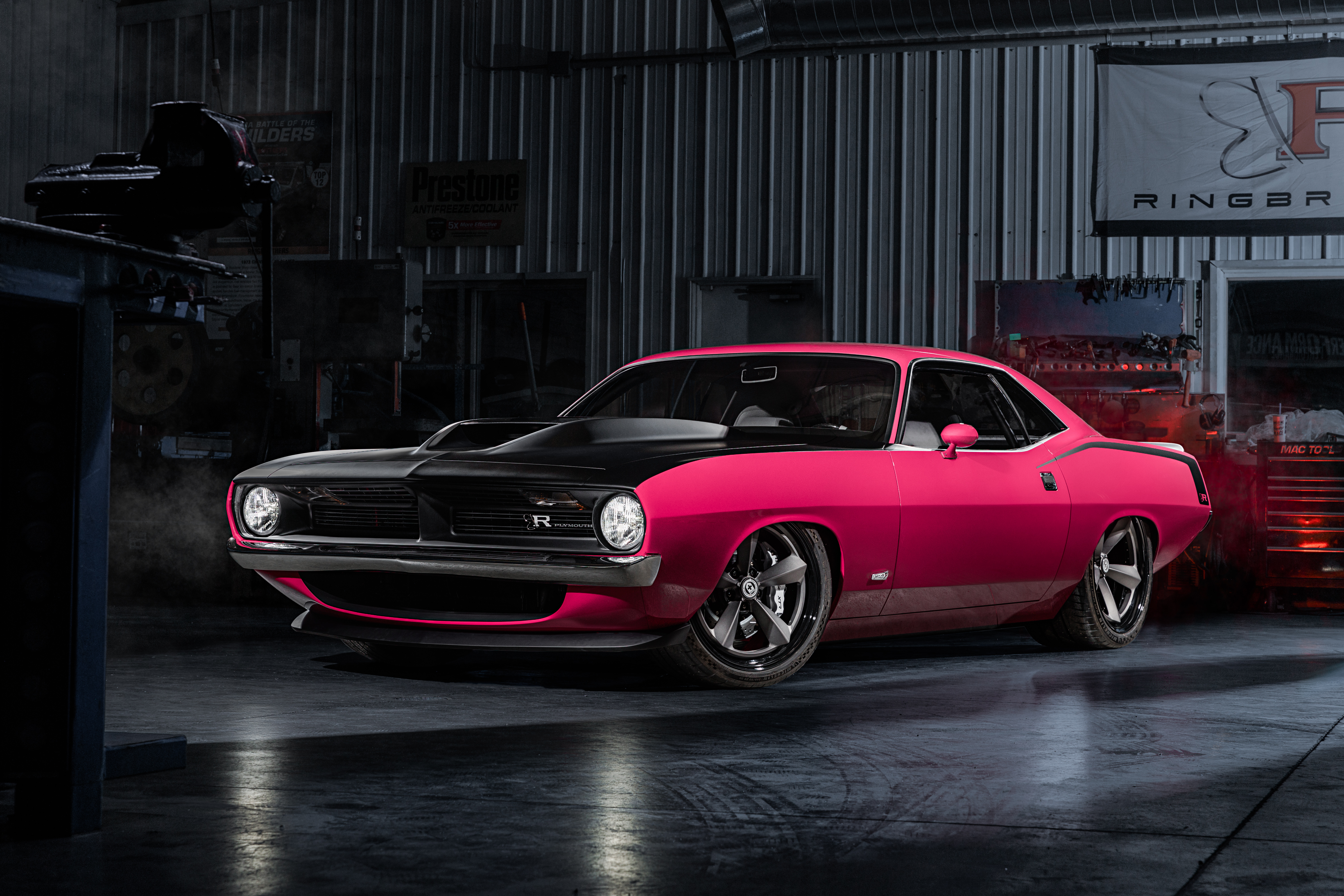 Ringbrothers’ INFECTED debuted in November at the SEMA Show in Las Vegas. A celebration of the playful spirit and vibrant colors of Mopar’s heyday, INFECTED features extensive fabrication and carbon-fiber components combined with a modern dynamic suspension and an 807-horsepower Hellcrate Redeye engine. Every facet of the car has been designed and built in-house by Ringbrothers, with 5,600 hours invested in the build.